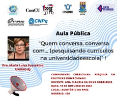 Notícias Aula Pública de Pesquisa em Políticas Educacionais Tweet publicado: 17/10/2022 17h36, última modificação: 17/10/2022 17h37