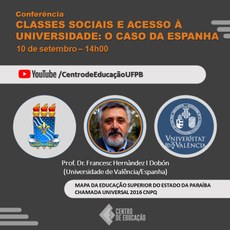 Participe da Conferência: CLASSES SOCIAIS E ACESSO À UNIVERSIDADE: O CASO DA ESPANHA.