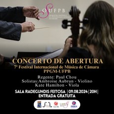 A OSUFPB fará, nesta sexta-feira, 09 de agosto, grande concerto na abertura do 7º Festival Internacional de Música de Câmara PPGM/UFPB, sob a regência do maestro Paul Chou (EUA) e os solistas Ambroise Aubrun (França), no violino, e Kate Hamilton (EUA), na viola. O evento acontece às 20h00, na Sala de Concertos Radegundis Feitosa, no Campus I da UFPB. A entrada é gratuita e rigorosamente por ordem de chegada.
