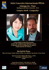 A Série Concertos Internacionais do Programa de Pós-Graduação em Música da UFPB recebe, no próximo dia 21 de maio, a virtuose pianista Solungga Liu (Bowling Green State University/EUA) e o laureado compositor franco-americano Gregory Mertl. Os músicos convidados realizarão atividades na UFPB ao longo de todo o dia, culminando com o Recital de piano da Profa. Solungga Liu, cujo programa inclui obras de Charles Griffes, Leos Janacek, Gregory Mertl, Amy Beach e César Franck.
