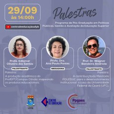 A Coordenação do Programa de Pós-Graduação em Políticas Públicas, Gestão e Avaliação da Educação Superior - PPGAES, convida a todos(as) os(as) Mestrandos(as) do Programa e comunidade acadêmica de Mestrados Profissionais para a nossa Aula Inaugural que se realizará no dia 29 de setembro de 2021 às 14h a qual será transmitida por meio do canal do Youtube do Centro de Educação da Universidade Federal da Paraíba - UFPB.
