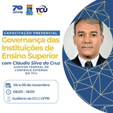 Convidamos os(as) gestores(as) para participarem, junto com suas equipes, da capacitação presencial “Governança das Instituições de Ensino Superior”, que será realizada aqui na UFPB, em parceria com o Tribunal de Contas da União (TCU).